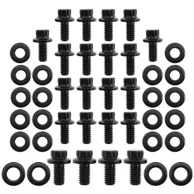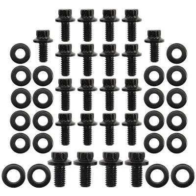 Aeroflow Performance oil pan bolt kits are designed to hold and secure your oil pan and gasket in place without the worry of loosening. Undoubtedly, these oil pan bolts are the most professional method of attaching an oil pan to your engine block. The bolts construction is such that theycan be re-used time and time again and provide prolonged gasket life.