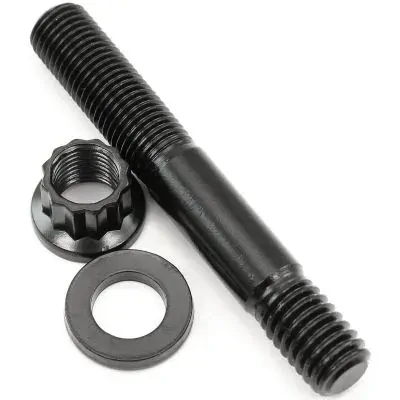 This oil pump stud kits are manufactured from aircraft quality 8740 high tensile strength chromoly steel and cold-forged to ensure molecular integrity within the stud. All nuts feature a 12-point head and hardened washers for an even load distribution and accurate torque readings.