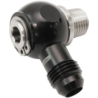 These NPT to AN full flow swivel banjo adapters from Aeroflow allow for a space-efficient installation with minimal flow loss. This fitting incorporates a stainless-steel NPT banjo bolt into a AN banjo adapter. The billet aluminium banjo can swivel in the assembly for easy orientation in all directions. With a circlip design to hold the banjo bolt in place, these have been tested up to 700 psi of pressure. The internal design of the banjo bolt is oversized for maximum flow and the dual Viton O-rings are safe for use in all fuel types (except Nitro).