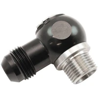 These NPT to AN full flow swivel banjo adapters from Aeroflow allow for a space-efficient installation with minimal flow loss. This fitting incorporates a stainless-steel NPT banjo bolt into a AN banjo adapter. The billet aluminium banjo can swivel in the assembly for easy orientation in all directions. With a circlip design to hold the banjo bolt in place, these have been tested up to 700 psi of pressure. The internal design of the banjo bolt is oversized for maximum flow and the dual Viton O-rings are safe for use in all fuel types (except Nitro).