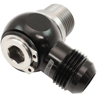 These NPT to AN full flow swivel banjo adapters from Aeroflow allow for a space-efficient installation with minimal flow loss. This fitting incorporates a stainless-steel NPT banjo bolt into a AN banjo adapter. The billet aluminium banjo can swivel in the assembly for easy orientation in all directions. With a circlip design to hold the banjo bolt in place, these have been tested up to 700 psi of pressure. The internal design of the banjo bolt is oversized for maximum flow and the dual Viton O-rings are safe for use in all fuel types (except Nitro).