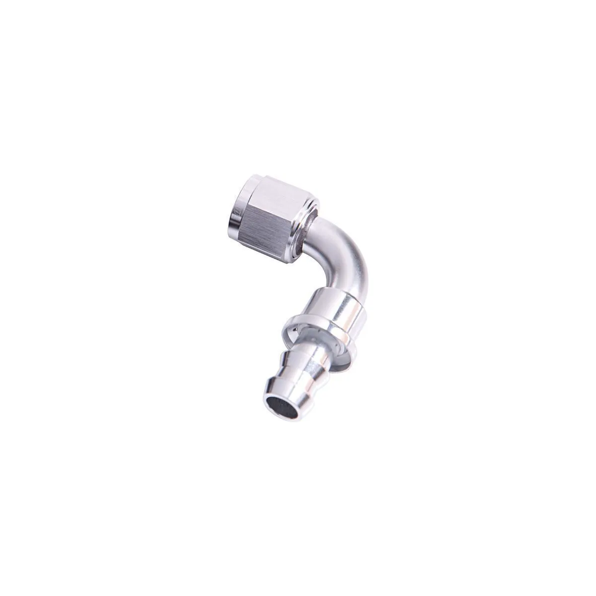 Aeroflow's 400 series push lock fittings are a mandrel bent braised full flow fitting with a custom designed barbed end to allow a quick, easy and leak free assembly. Aeroflow's push lock fittings come with a purpose designed cover to hide the messy cut end of the hose to give you that professional look everytime. Compatible Hose: 400 and 500 Series Push Lock hose (Blue and Black).