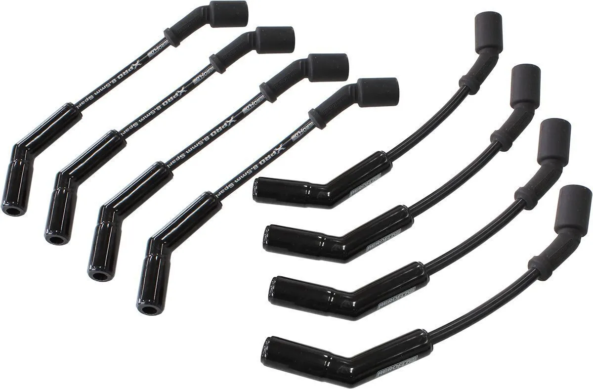 Aeroflow Performance 8.5mm (21/64") direct fit GM LS ceramic spark plug wire sets feature a 135-degree ceramic boot on one end and a 45-degree LS coil boot pre crimped. Ceramic lead boots have been developed to address the problems associated with burnt spark plug boots. Whether you're running headers with close tolerances, a turbo manifold and dump pipe with very little room in the engine bay for heat shields or you're just over melting your spark plug boots from extreme heat. These black ceramic wire boots are the answer! They can withstand temperatures of up to 1090°C (2000°F). Matched with our XPRO ignition lead wire that is 8.5mm spiral wound low resistance with high EMI suppression.