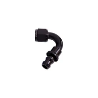 Aeroflow's 400 series push lock fittings are a mandrel bent braised full flow fitting with a custom designed barbed end to allow a quick, easy and leak free assembly. Aeroflow's push lock fittings come with a purpose designed cover to hide the messy cut end of the hose to give you that professional look everytime. Compatible Hose: 400 and 500 Series Push Lock hose (Blue and Black).