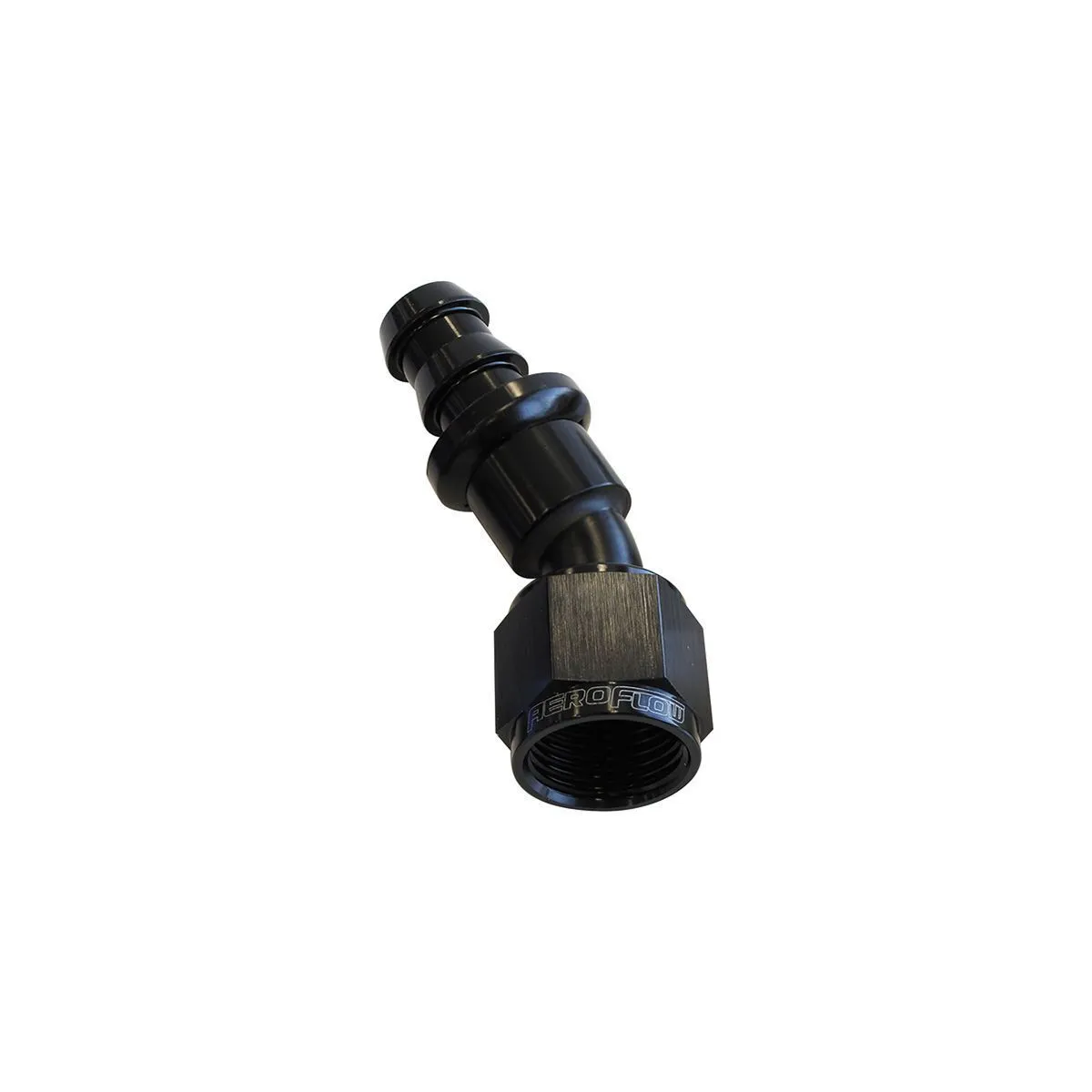 Aeroflow's 400 series push lock fittings are a mandrel bent braised full flow fitting with a custom designed barbed end to allow a quick, easy and leak free assembly. Aeroflow's push lock fittings come with a purpose designed cover to hide the messy cut end of the hose to give you that professional look everytime. Compatible Hose: 400 and 500 Series Push Lock hose (Blue and Black).
