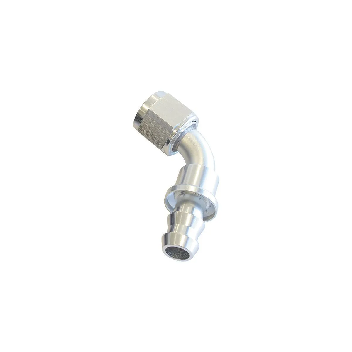 Aeroflow's 400 series push lock fittings are a mandrel bent braised full flow fitting with a custom designed barbed end to allow a quick, easy and leak free assembly. Aeroflow's push lock fittings come with a purpose designed cover to hide the messy cut end of the hose to give you that professional look everytime. Compatible Hose: 400 and 500 Series Push Lock hose (Blue and Black).