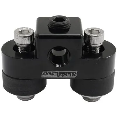 The Aeroflow Performance Pressure Sensor Block is a must to protect your transducers from harsh engine vibrations, shock loads and heat leading to premature failure to the sensitive internals of the modern day pressure sensors when mountingdirectly to engine blocks. To prolong the life and reliability remote mounting these sensitive pressure sensors is recommended to improve service life and reliability. This block will allow you to remote mount up to 1 sensor with 3 x 1/8"NPT ports to choose from. Thisblock includes rubber mounts to help protect the sensor from the harsh vibrations of the vehicle. Compatible with all transducers that utilize 1/8" NPT male threads.
