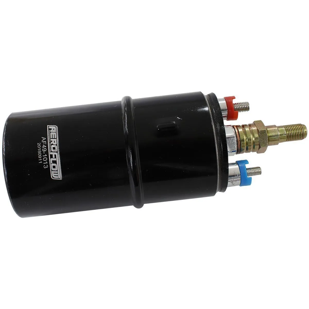 This Aeroflow Performance fuel pump delivers outstanding performance and duraility and is one of the most popular pumps on the market for performance and racing applications. This fuel pump is almost identical to the AF49-1014 but is only suitable for In-Tank applications. It features a screen on the bottom of the fuel pump which acts as a filter to keep any unwanted debris from entering the pump. While producing 300lph (79GPH) of fuel low and operating at 72.5psi, you will be able to support 675 horsepower. It features a check valve already installed into the outlet, if you leave it in you will need to run a banjo fitting off it as it has a tapered thread. It is quite common for people to remove the check valve and screw and adapter straight in to the outlet. If you do this you will need to put an aftermarket check valve in-line to keep fuel pressure in your lines.