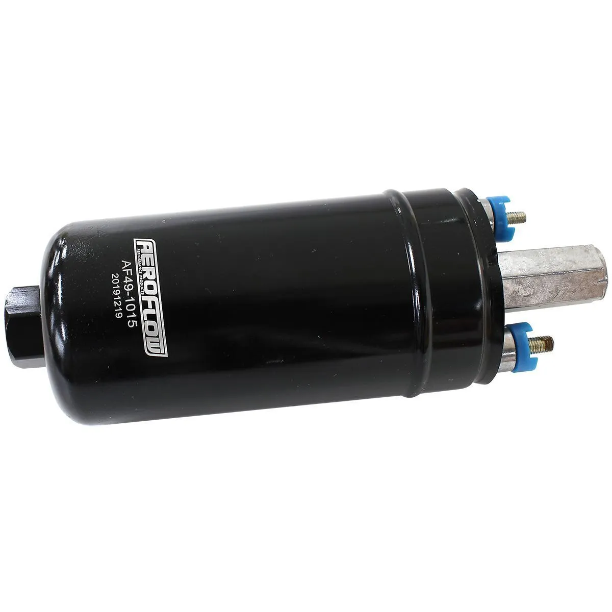 This Aeroflow Performance fuel pump delivers outstanding performance and durability and is one of the most popular pumps for performance and racing applications. This fuel pump is almost identical to AF49-1014 but features a smaller M14 x1.5mm inlet. The pump is very versatile, allowing you to mount your pump externally as an in-line pump or internally as an in-tank pump. While producing 300lph (79GPH) of fuel flow and operating at 72.5psi, with this pump you will be able to support 675hp. It features a check valve already screwed in to the outlet, if you leave it in you will need to run a banjo fitting as the thread is tapered. It is common for people to remove this check valve and screw an adaptor fitting straight in the outlet. If you do this you will need to put an aftermarket check valve in-line to keep fuel pressure in your lines.