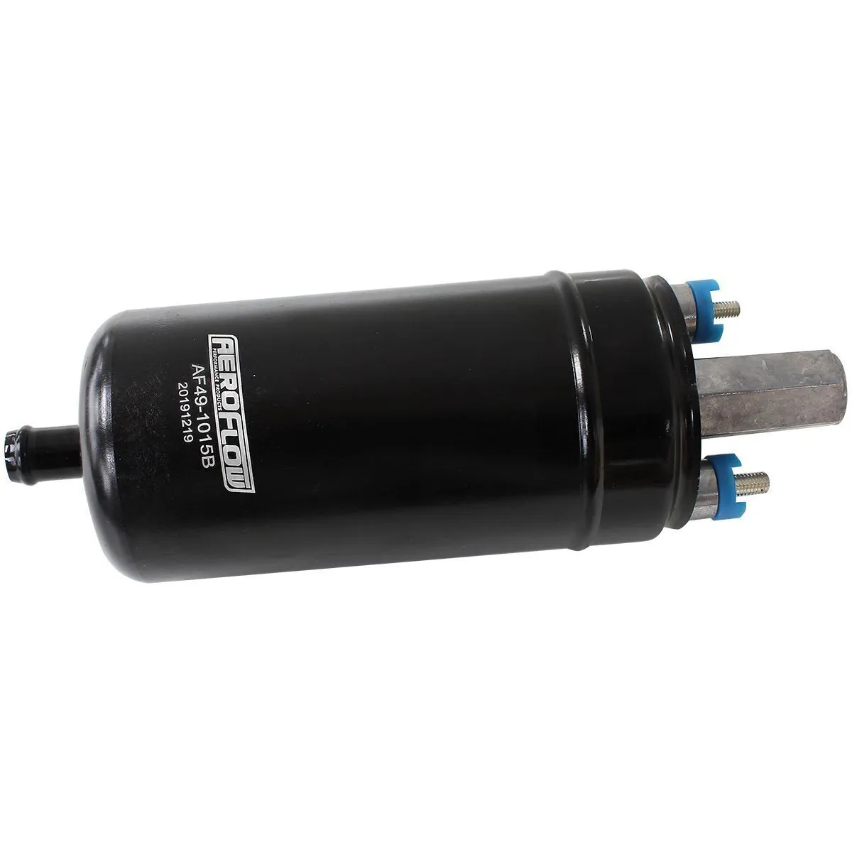 This Aeroflow Performance fuel pump delivers outstanding performance and durability and is one of the most popular pumps for performance and racing applications. This fuel pump is almost identical to AF49-1014 but features a 12.7mm (1/2") inlet. The pump is very versatile, allowing you to mount your pump externally as an in-line pump or internally as an in-tank pump. While producing 300lph (79GPH) of fuel flow and operating at 72.5psi, with this pump you will be able to support 675hp. It features a check valve already screwed in to the outlet, if you leave it in you will need to run a banjo fitting as the thread is tapered. It is common for people to remove this check valve and screw an adaptor fitting straight in the outlet. If you do this you will need to put an aftermarket check valve in-line to keep fuel pressure in your lines.