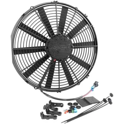 The Aeroflow Performance universal brushless electric fans are suitable for both A/C condenser, radiator cooling or can be mounted to any fluid cooler. These fans provide an increase in air flow with less amp draw, compared to our regular electric fans. This makes it better for air conditioning performance, cooler engine running, and increased engine power with less load on the electrical system. This brushless fan does not require any specific controllers and just a simple positive (+) and negative (-) wiring with an appropriate automotive relay. It will not work with any variable speed fan controllers but on/off thermostat controllers will work which are sold separately. Designed for 12-volt systems only with a soft start ramp up feature which prevents amp spikes with a fan turning on and off.