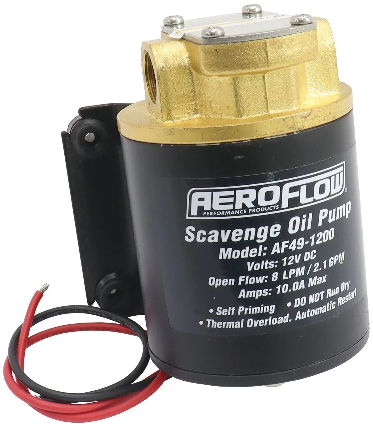 Aeroflow Performance 12-volt electric oil pump is designed to handle the toughest automotive racing environments for transmission / gear oil fluid cooling or scavenge systems on your turbo drain back systems.. The internals feature a hardened bronze spur gear & rotors so there are no diaphragms to fail during operation. NOTE: this gear pump will have a higher noise level due to the internal design.