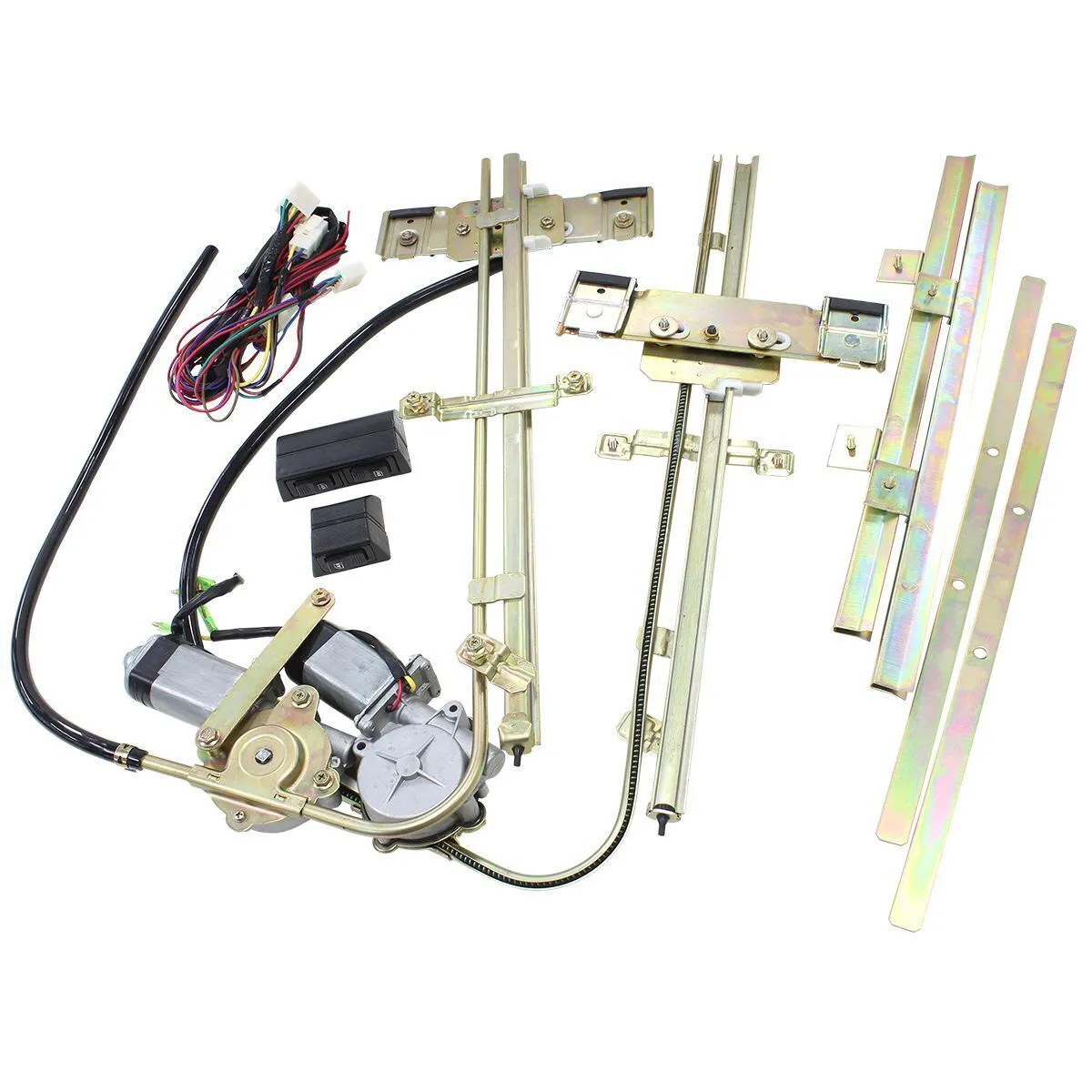 Aeroflow's Electric Universal Power Window Kit is a great option for any custom car that has a a sliding flat side glass window. Due to the high-torque motors and custom mounting brackets, this power window kit is great for older cars have never had power windows and installation is simple. Each kit comes with high- torque worm-gear driven motors, reinforced guide tracks and adjustable window bases, all of which assure smooth window operation that is quiet and long lasting. This kit is designed to suit 2 door cars with a flat glass that goes straight up and down and are between 152.4mm (6") to 609.6mm (24").