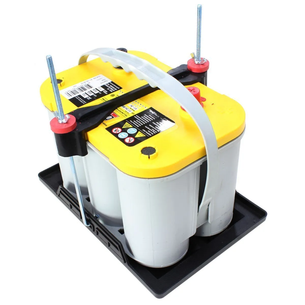 Aeroflow's battery trays are the perfect mounting solution for those planning to add a second battery, or even relocate or provide a better support and base for an existing battery. It has recessed slots in base so the battery does not make contact with tray fasteners. Inside dimensions are 285mm (11-1/4") x 185mm (7-1/4")