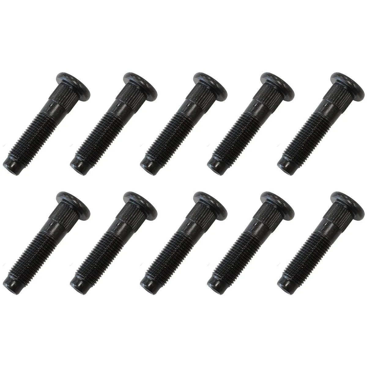 Ford 9 inch rear end centre carrier studs are manufactured from high strength steel with a thread size of 3/8"-24 and overall length of 1.75" ( 44.45mm ). A knurl size of 0.395" ( 10mm ) studs. This set includes 10 studs only, no nuts/washers are included.