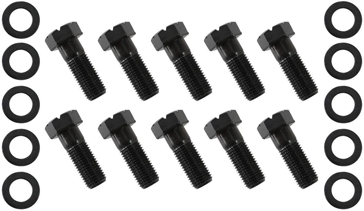 The Aeroflow Performance Ford 9 Inch ring gear bolt sets are constructed from durable steel and featured in a black finish. Hex wrench type with a thread pitch of 7/16"-20. We recommend to torque these to 70ft/lb ( 94 Nm ). They come in three different lengths as listed below.