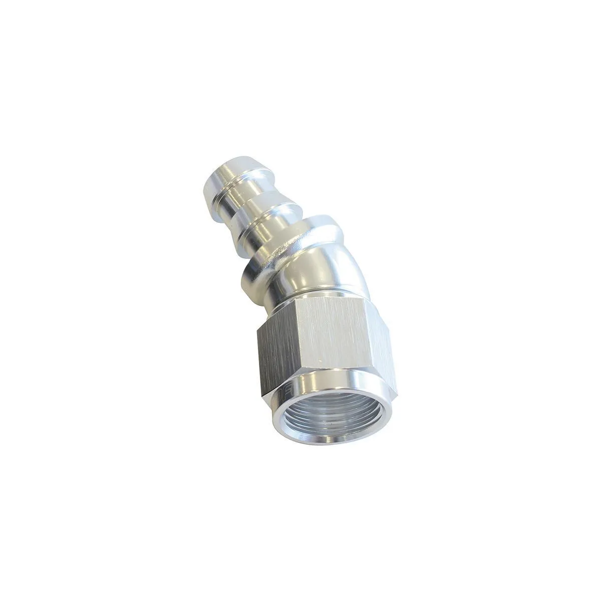 Aeroflow's 510 series push lock fittings are a CNC machined one piece fitting which provide uninterrupted flow. The mandrel bent tight radius body has superior wall thickness with a custom designed barbed end to allow a quick, easy and leak free assembly. Aeroflow's push lock fittings come with a purpose designed cover to hide the messy cut end of the hose to give you that professional look everytime. Compatible Hose: 400 and 500 Series Push Lock hose (Blue and Black).