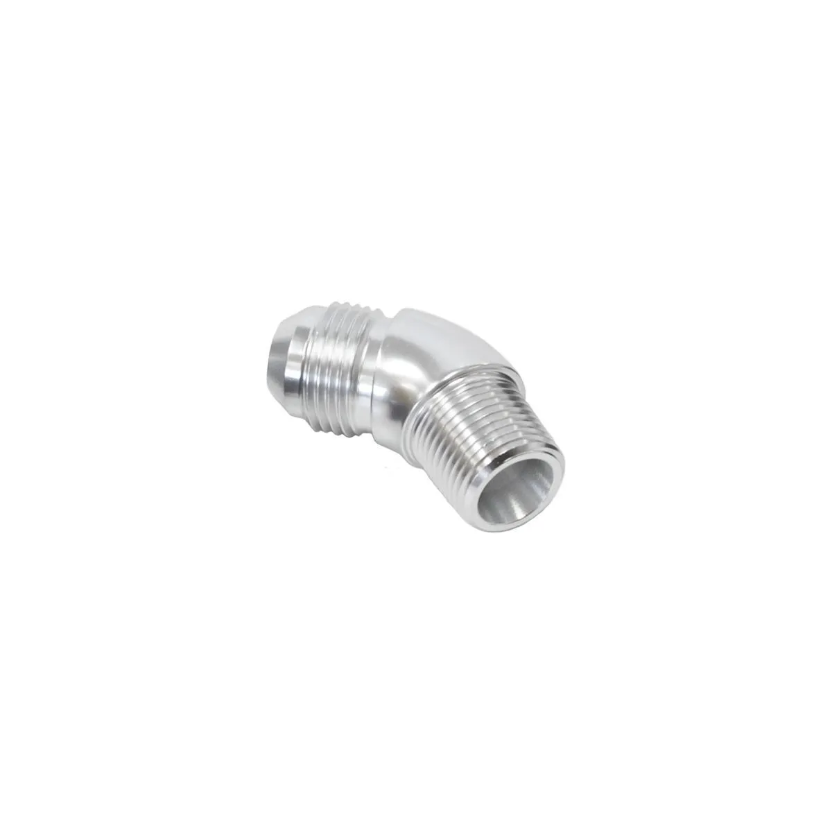 Male to Male full flow NPT to AN adapter. Adapt from and NPT thread to AN flare with a 45 degree bend. The full flow design ensures no restriction in flow from matched hose sizes. Various sizes available.