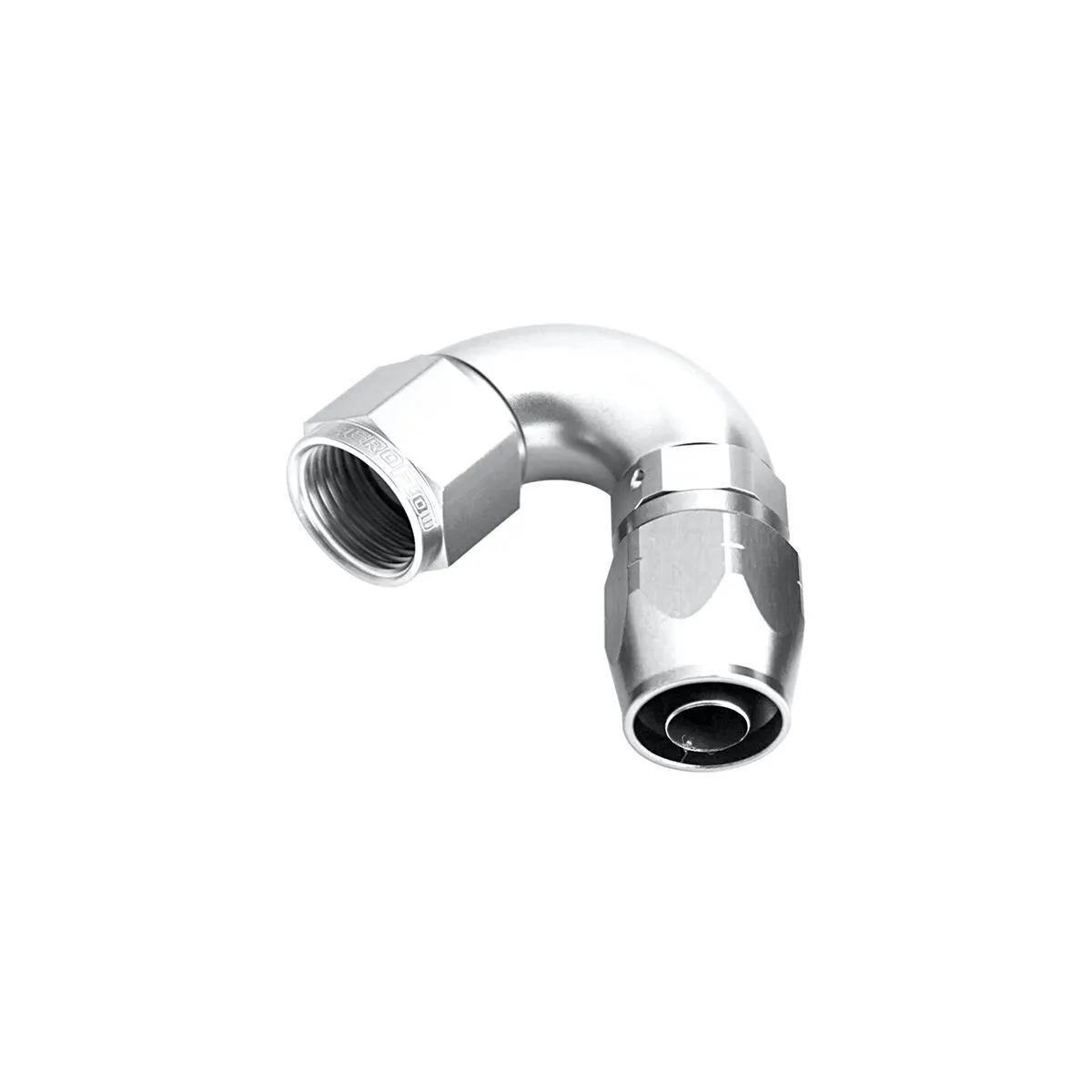 Aeroflow's 550 Series cutter fittings are a CNC machined one piece fitting which provide uninterrupted flow. The billet cutter end separates the wire braid for maximum hose retention, sealing the hose for a second time which provides a greater sealing area for strength and easier assembly. The tight mandrel bent radius body has superior wall thickness and a swivel head allowing for easy adjustment. Aeroflow's 550 series fittings are the choice of professionals for use in fuel systems, cooling systems, vacuum applications and oil systems. Compatible hose: 100 Series Stainless Steel braid and 450 Series Lightweight Nylon braid.