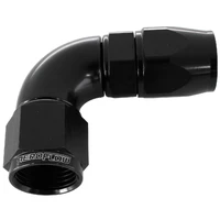 Aeroflow's 570 Series PTFE fittings are a CNC machined one piece fitting which provides uninterrupted flow. The purpose designed olive compresses into the PTFE (Teflon®) inner tube for easy, leak free assembly. The mandrel bent tight radius body has superior wall thickness and a swivel head allowing for easy adjustment. Aeroflow's 570 series fittings are the choice of professionals for use in power steering, automatic transmission, nitrous, fuel systems, cooling systems, vacuum applications, oil systems, brake and clutch lines. Compatible Hose: 200 Series Stainless Steel braid and 250 Series Nylon braid PTFE (Teflon®) hose.