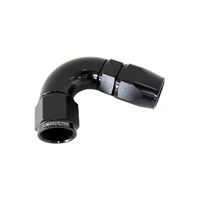 Aeroflow's 570 Series PTFE fittings are a CNC machined one piece fitting which provides uninterrupted flow. The purpose designed olive compresses into the PTFE (Teflon®) inner tube for easy, leak free assembly. The mandrel bent tight radius body has superior wall thickness and a swivel head allowing for easy adjustment. Aeroflow's 570 series fittings are the choice of professionals for use in power steering, automatic transmission, nitrous, fuel systems, cooling systems, vacuum applications, oil systems, brake and clutch lines. Compatible Hose: 200 Series Stainless Steel braid and 250 Series Nylon braid PTFE (Teflon®) hose.