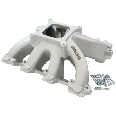 Convert your GM LS engine from EFI to Non-EFI carburettor in retro-fit applications with this Aeroflow Performance hi rise (Super Victor Style) cast intake manifold. This single-plane intake manifold is designed to keep your air and fuel distribution going into the engine at a steady and even flow for maximum performance and efficiency. The carburettor-mounting pad is designed to accept aftermarket 4150 square-bore carburettors with either manual or electric choke options available on today?¢¬Ĭôsmarket. Specifically designed to suit GM LS Gen III and IV engines equipped with OE or aftermarket LS1/LS2 cathedral port cylinder heads. This product is intended for carburetted, throttle body EFI, or port EFI applications.