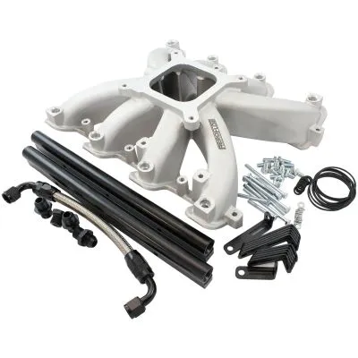 ‚Ģ This intake manifold does not work with factory OEM fuel rails and requires the use of Aeroflow Fuel Rail Kit included (AF6999-6000).