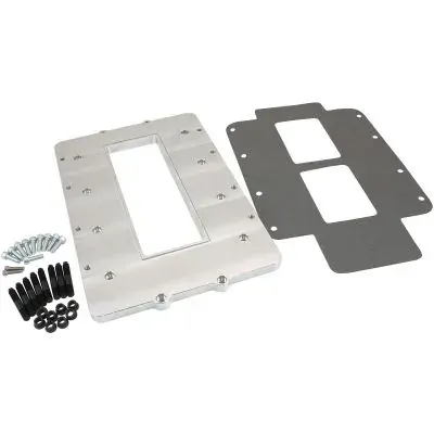 The modular design is made up of the bottom base which bolts to the cylinder heads and the top plate which bolts to the base with an O-ring to seal both components. This top plate features a supercharger flat plate flange to suit both 6-71 and 8-71 blowers. Includes 7075 blower studs and suits M8 x 1.25mm screws to bolt to all modular intake manifold bases in the Aeroflow range. Available in either natural cast or black coated finishes.