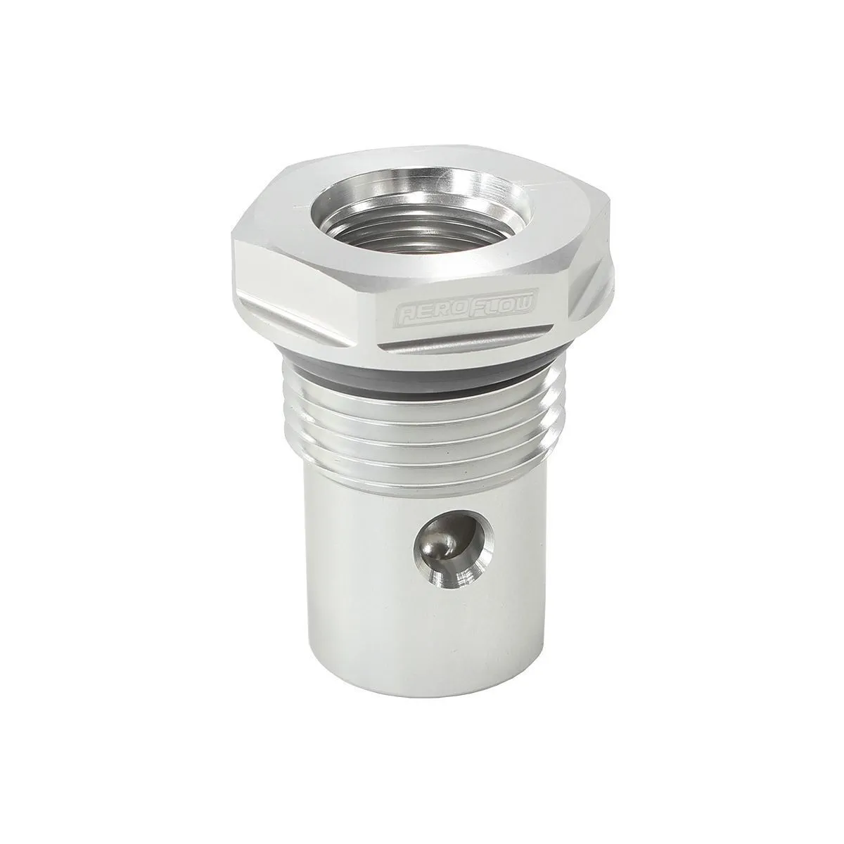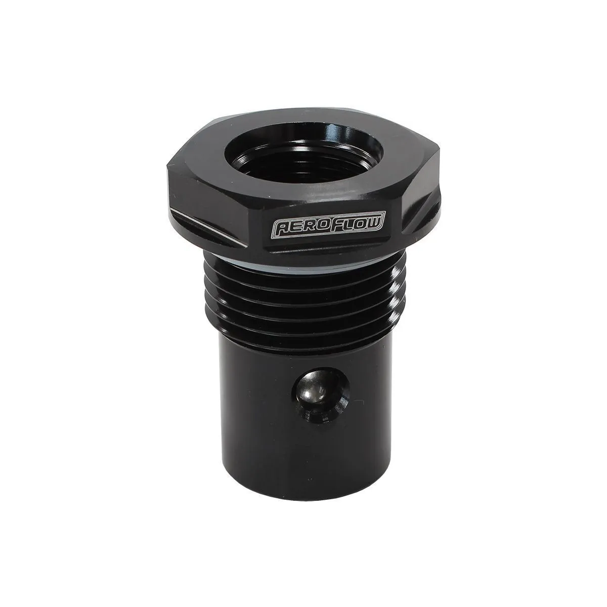 Aeroflow's Universal roll over valve can be screwed directly into an Aeroflow Fuel cell that has a -12 female thread. The top of the valve has a -8 ORB female thread and a stainless steel ball. It can be used with the AF996-12D, AF996-12S and AF996-12SS weld on or an AF924-12 Bulk Head nut with a choice of any -08 ORB to suit any plumbing solution. When the fitting is screwed into the top of the roll over valve it locks the ball.