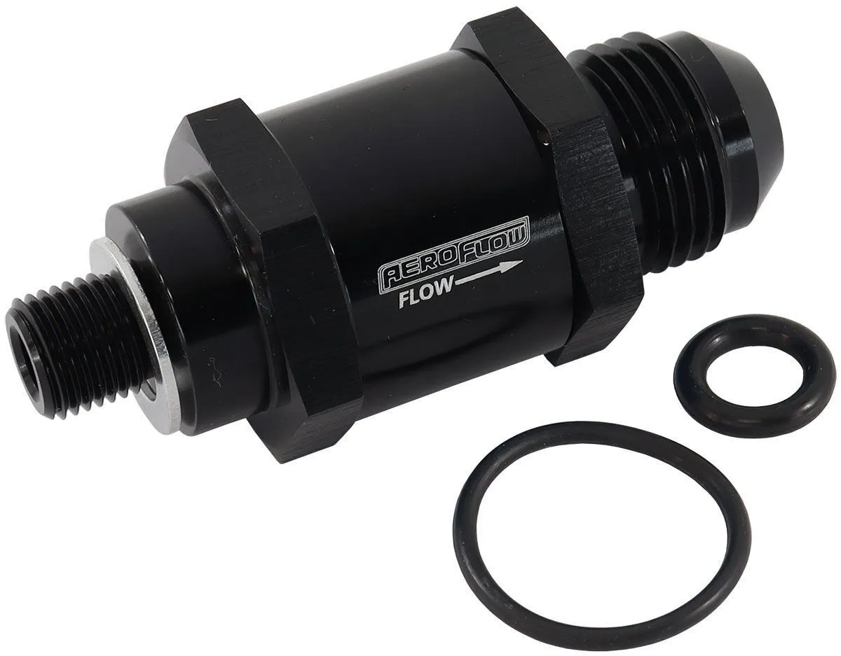This CNC machined check valve screws directly into the Bosch 200 EFI fuel pump to hold line pressure and extend the life of the pump.