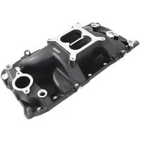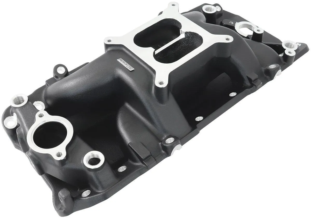 Get the maximum power from your carburetted engine with this Air Gap Big Block Chevy carburetted cast intake manifold. This dual-plane intake manifold is designed to keep your air and fuel distribution going into the engine at a steady and even flow for maximum performance and efficiency. The carburettor-mounting pad is designed to accept aftermarket square-bore carburettors with either manual or electric choke options available on today’s market. Specifically designed for 396-502 cubic inch big-block Chevy engines with large oval-port cylinder heads (1975 and earlier) operating from 1500 to 6500 rpm range. In most cases, these manifolds accept late model water necks, air conditioning, alternator and H.E.I. ignition systems.