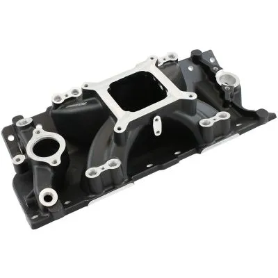 Specifically designed for 262-400 cubic inch small-block Chevy enginesoperating in the 2500 to 7500 rpm range. In most cases, these manifolds accept factoryOE water necks, air conditioning, alternator and H.E.I. ignition systems.