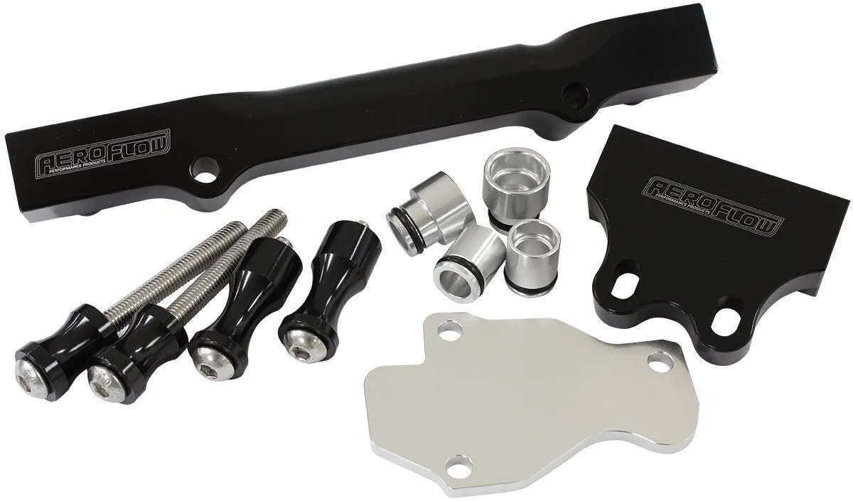 Aeroflow Performance Mazda rotary fuel rail to suit 13B engines in series 6,7 & 8 Mazda RX7. The high flow primary and secondary fuel rails have an integrated one-piece bracket design. Each rail features female -8ORB ports on each end and a large internal bore to support all necessary engine power requirements. Aeroflow fuel rails are double anodised and are available in Blue, Black, Red and Silver finishes.