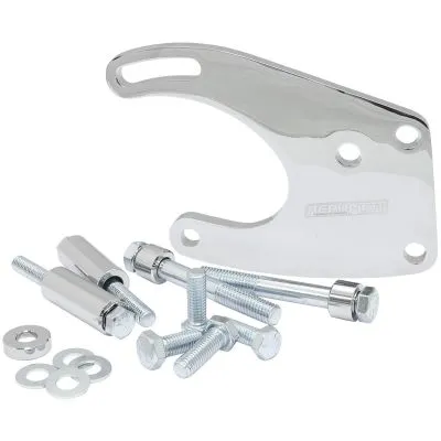 This power steering bracket from Aeroflow Performance is made from machined mild steel and is designed to suit Small Block Ford Windsor 289-351 V8s with a Mid-Mounted alternator on the left-hand side (Australian Passenger Side) of the motor and using a GM Saginaw style power steering pump. This kit includes brackets and hardware for both metric and SAE Saginaw self-contained power steering pumps. It will fit Ford Windsor engines with and without air conditioning. Available in Chrome or Black Finish.