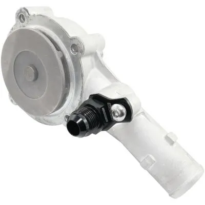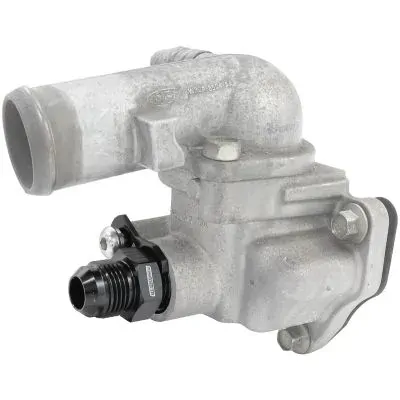 The Aeroflow Performance press in adapter for the Ford Falcon BA-BF and FG Barra engine is a great way to easily install custom water lines. This billet adapter inserts into the same spot as the factory hard line pipe on the thermostat housing in all 6-cylinder Barra engines. This is great for those who want to remove/replace any of the OEM factory water lines with motorsport style hoses and Dash fittings. This fitting is provided with a male -10AN as well as a new O-Ring for installation. Sold individually in hard anodized black finish.