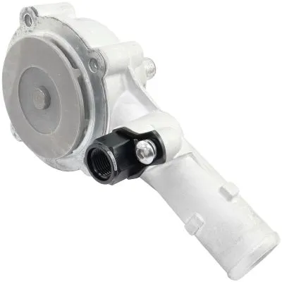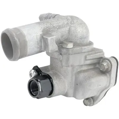 The Aeroflow Performance press in adapter for the Ford Falcon BA-BF and FG Barra engine is a great way to easily install custom water lines. This billet adapter inserts into the same spot as the factory hard line pipe on the thermostat housing in all 6-cylinder Barra engines. This is great for those who want to remove/replace any of the OEM factory water lines with motorsport style hoses and Dash fittings. This fitting is provided with a female -8ORB as well as a new O-Ring for installation. Sold individually in hard anodized black finish.