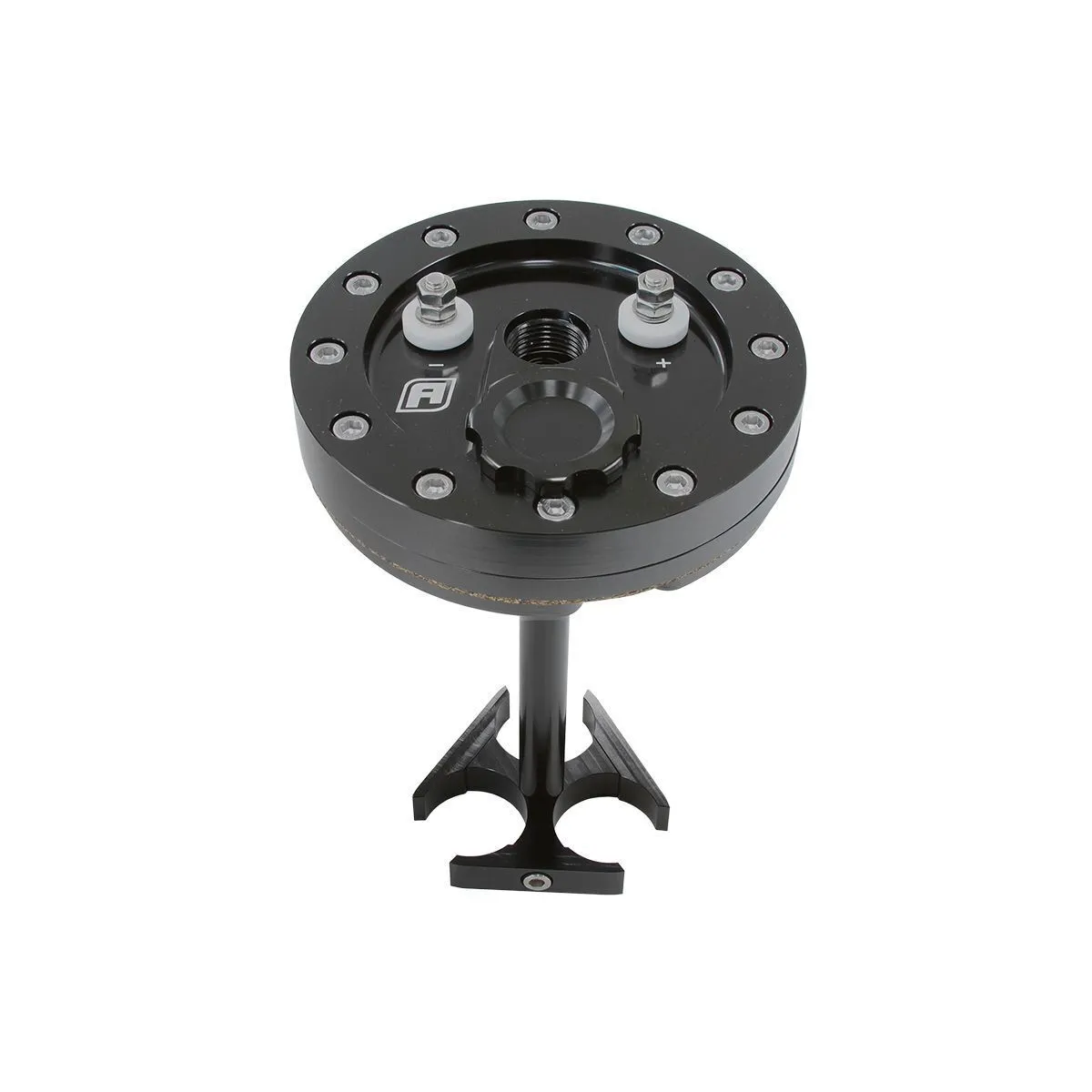 Now you can upgrade your fuel delivery system without having to replace or customise your fuel cell. Aeroflow has developed a triple pump hanger that replaces the standard fuel cell filler cap and is a straight bolt in item. The billet hanger has a built in fuel cap and has the ability to mount one, two or three AF49-1041 EFI fuel pumps or any 39mm (1-17/32") diameter fuel pumps. CNC machined from billet 6061-T6 aluminium with a black anodized option for maximum durability and corrosion protection against E85/Methanol.