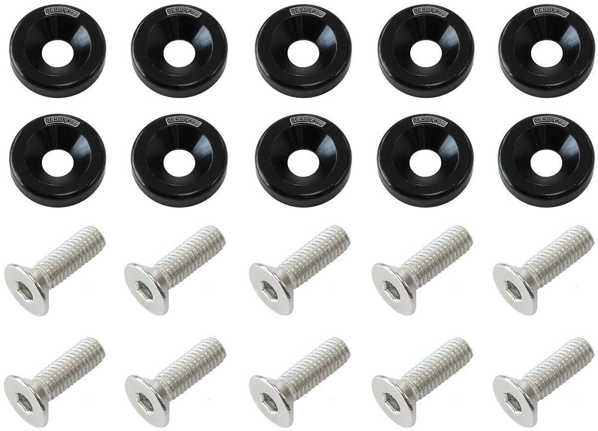 Add that last finishing touches to your engine bay with these all new Aeroflow Performance billet dress up bolts. Available in anodized Black, Blue, Gold, Purple, Red and Silver. These fender washers are constructed from aircraft grade aluminium and are matched up with long lasting stainless steel bolts. Using a thread size of M8 x 1.25mm and under head length of 20mm makes them perfect for any application in the engine bay of all Japanese domestic import vehicles.