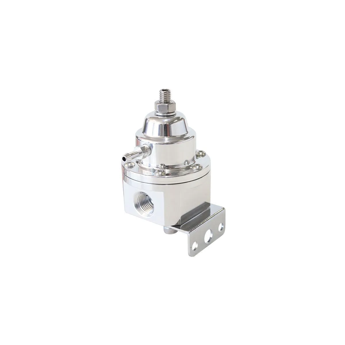 Billet 2 port EFI regulators. Made from billet 6061 T6 aluminium these regulators are an ideal upgrade for the EFI fuel systems. Will support up to 1200hp. Ethanol, methanol & unleaded compatible. These regulators have 3 x -6 ORB Ports and also include 1 x 1/8" NPT Port. Adjustable from 30-120 psi. Available in polished & black finishes and come with chrome mounting bracket and screws.