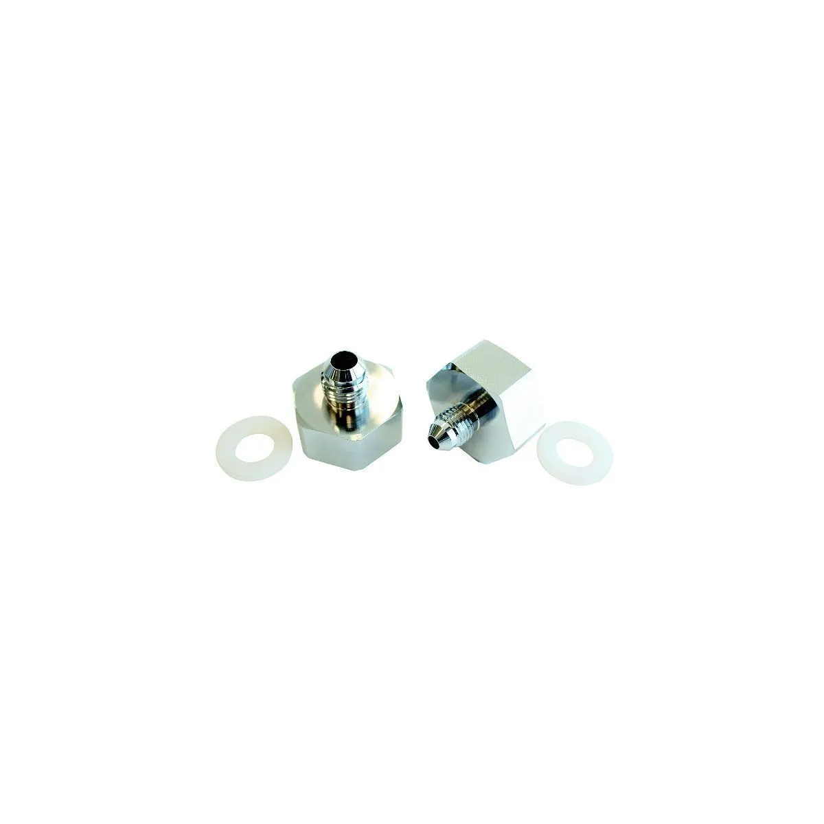 These bottle nut adapters from Aeroflow enable you to connect your nitrous bottle outlet to a AN braided line for easy nitrous oxide plumbing. Available to suit either Gen 2 NOS brand bottles or BOC brand nitrous bottles. Featuring a 1” female thread and either a male -4AN or -6AN. They are made from steel for durability to be able to take off and on several times to refill or remove the nitrous bottle. A PTFE washer is included to seal onto the nitrous bottle.