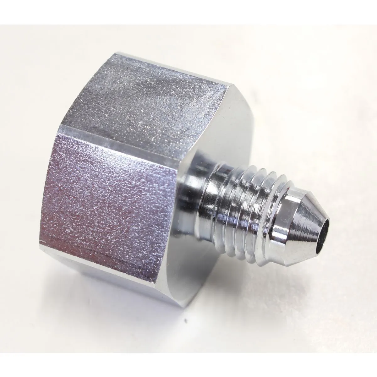These bottle nut adapters from Aeroflow enable you to connect your nitrous bottle outlet to a AN braided line for easy nitrous oxide plumbing. Available to suit either Gen 2 NOS brand bottles or BOC brand nitrous bottles. Featuring a 1” female thread and either a male -4AN or -6AN. They are made from steel for durability to be able to take off and on several times to refill or remove the nitrous bottle. A PTFE washer is included to seal onto the nitrous bottle.