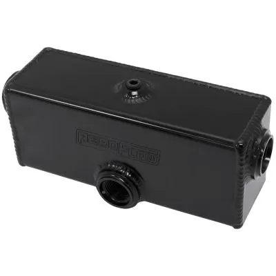 This neat little compact tank is specifically designed as a turbo oil drain scavenge drain tank or collector. This makes it a great tank for low mount turbocharger options or if you have a turbocharger installed in a location where a free flowing drain hose is not possible. This tank will allow oil to collect in this sump and you must have a oil scavenge pump (AF49-1200 sold separately) to draw the oil out of this tank and transfer it back to the engine sump. Each side of the tank has a female -12ORB which can be used as a inlet from the drainon the turbocharger. With a female -10ORB which will be the feed line for the scavengepump. Included on the top of this aluminium tank is a 1/8" NPT that is designedfor a vent line which is important to stop the oil fromaerating. As well as a 1/8" drain on the bottom of the tank if you require it to be emmptied from time to time