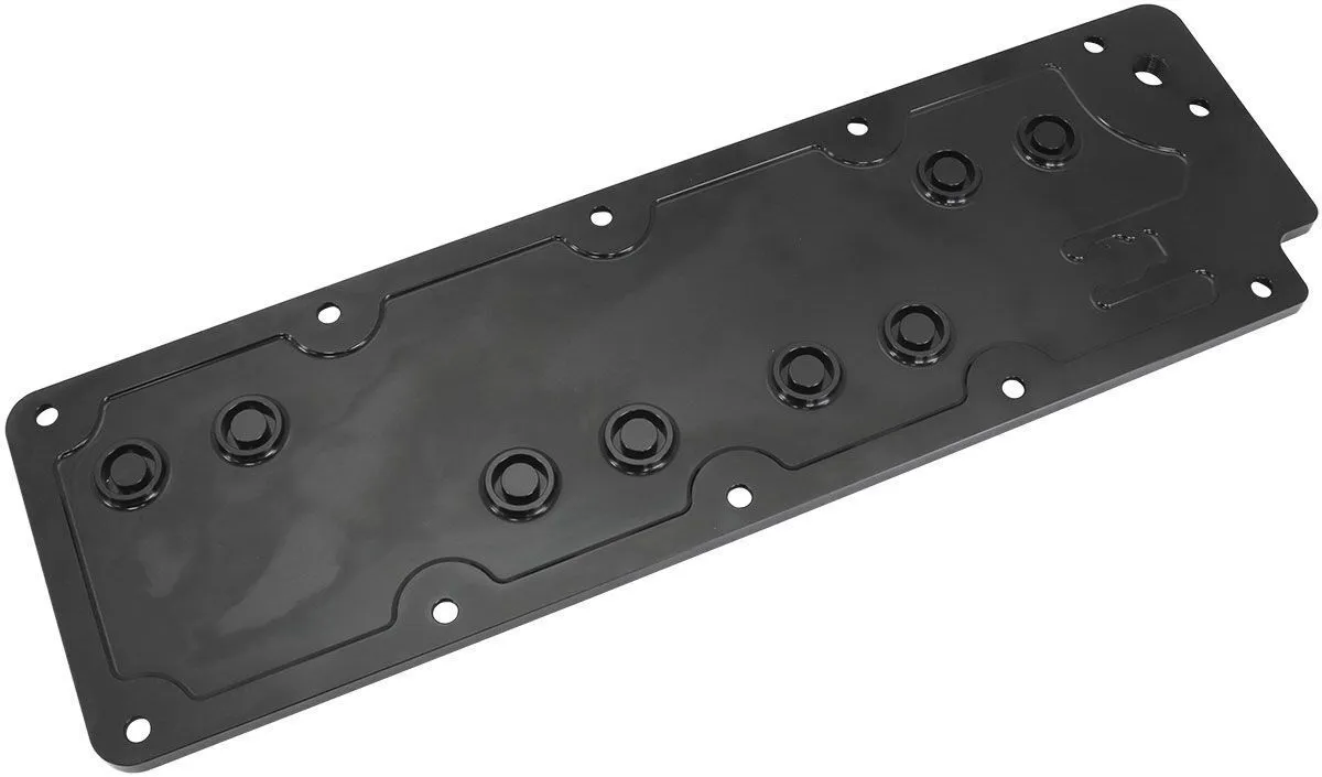 Aeroflow Performance billet LS3 valley plate is perfect for those who want to clean up the look of their modern LS engine or create a custom touch. Designed to be low profile that will eliminate any fitment issues with factory and aftermarket intakes ad still take the factory gasket. Precision manufactured from billet aluminium with a modern, race inspired design and a cost -effective alternative to the factory GM pieces. These valley plates are machined smooth on the underside, allowing for the elimination of Displacement-On-Demand (DOD) or Active Fuel Management (AFM), and instead feature O-Ring gaskets to seal them off. An extra 90-degree provision is bolted to the top of the valley plate for re-installing the oil pressure sensor if necessary.