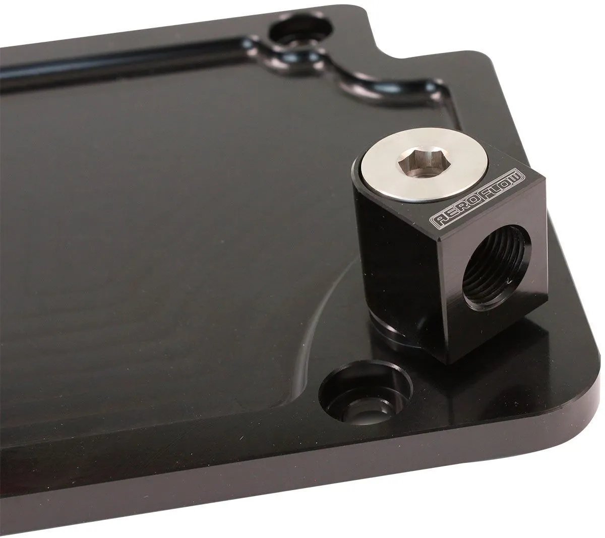 This GM LS valley plate banjo adapter is designed to fit factory or Aftermarket valley plates including the Aeroflow Performance valley plates. It is designed to fit the factory oil pressure switch with a M16 x 1.50mm thread. The stainless steel banjo and adapter allows you to swivel the oil pressure switch in various positions to clear intake manifolds and accessories. This low-profile banjo (27mm Total Height) will sit the oil pressure switch horizontally rather than the factory position (vertically) to allow for greater clearance.