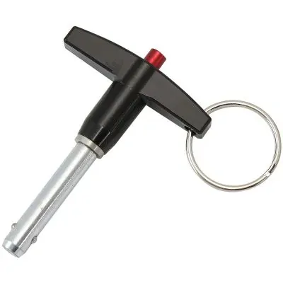 These "T" handled quick release pins are a fastener connecting piece designed for quick locking, and fixing, which can lock and unlock components quickly and easily. Press the button on the handle to retract the steel ball on the head of the pin body, then pass the quick-release pin through the hole. The Pins will not release until the button on the handle is depressed. Made from durable stainless steel, all have high hardness, no rust, wear resistance, and long service life. The T Handle is CNC alloy and anodized in black with various lengths and diameters to suit different applications.