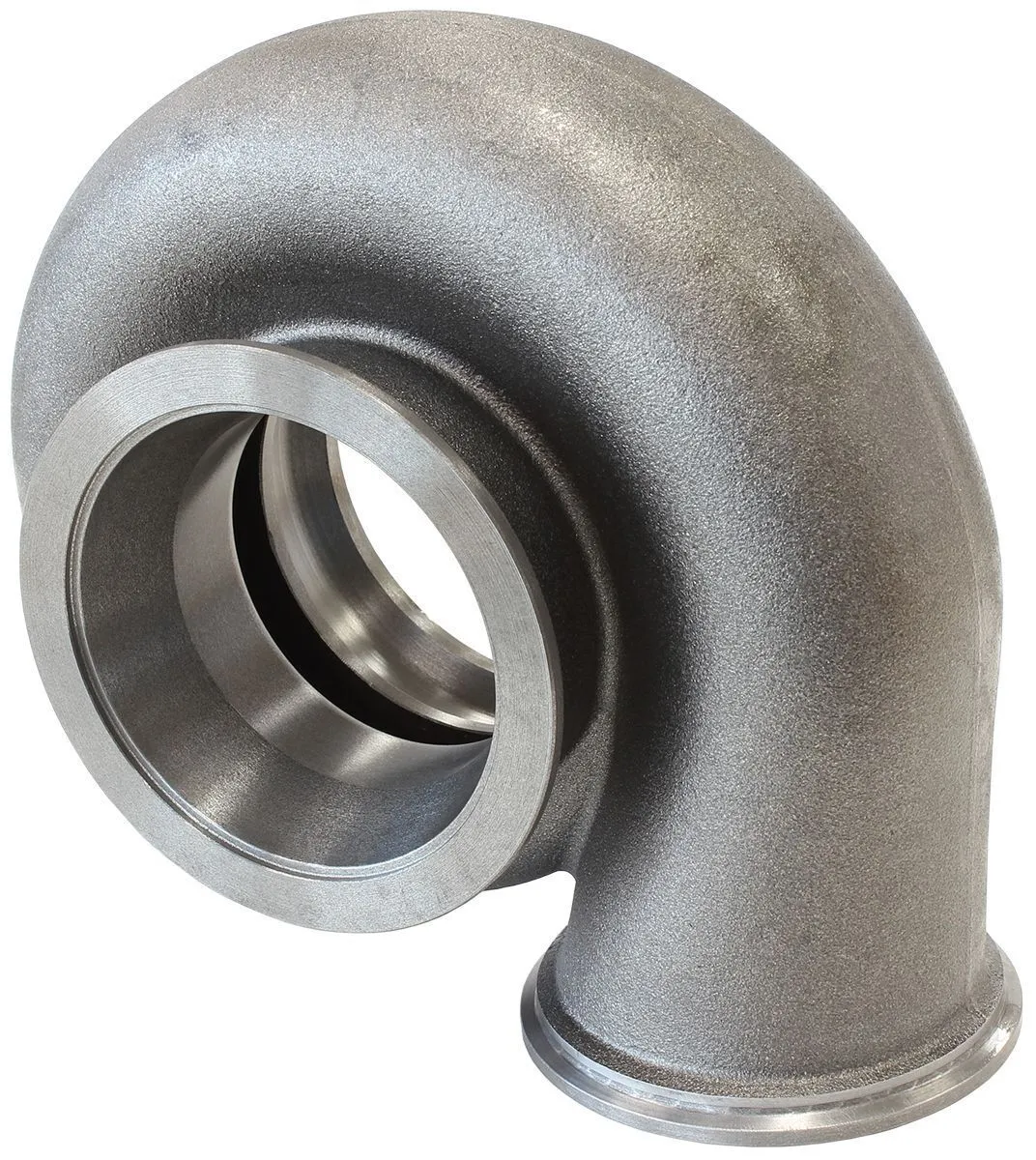 • Aeroflow Performance offers a variety of replacement turbine rear housings for their entire range for Boosted series turbochargers. You can choose to option for a smaller or larger A/R ratio. This will allow you to fine tune depending on your application for engine configuration and driving conditions. Available in many different turbine inlet and outlet flanges to fit most exhaust manifolds such as T25/T28, T3, T4 ,T6 and V-Band and Exhaust downpipes such as 5 bolt and V-band. Turbine housings can be replaced on most turbos easily via mounting bolts or V-bands and a few minutes of time. They can be clocked 360 degrees to just about any position needed.