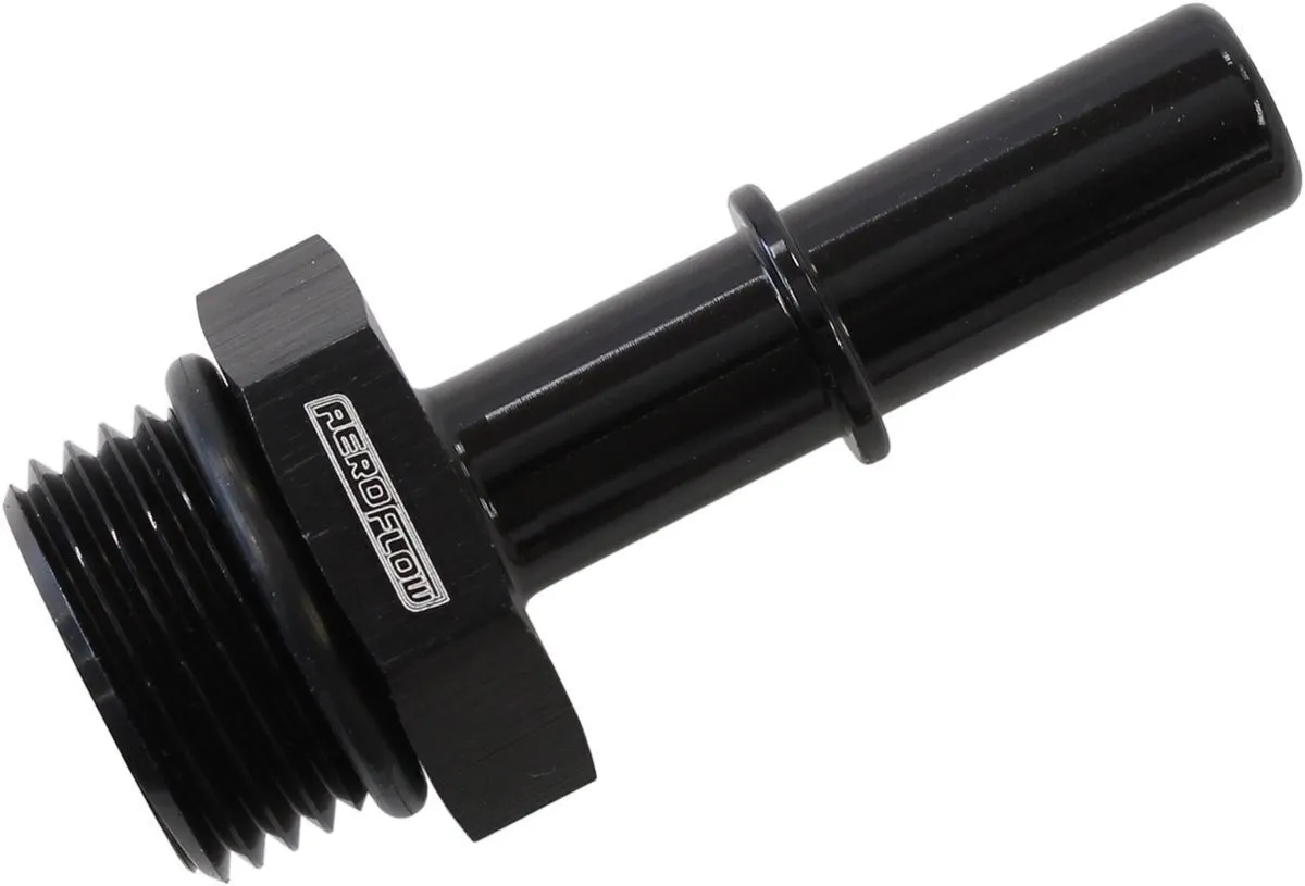 The Aeroflow Performance range of push-on EFI fuel fittings adapt popular GM, Ford and Chrysler male fuel connections to a male AN or ORB fittings. These adapters allow factory fuel lines and connectors to be mated to aftermarket fuel rails and fuel tank etc. Manufactured from 6061-T6 aerospace grade aluminium and available in Blue, Black and Silver anodised finishes.
