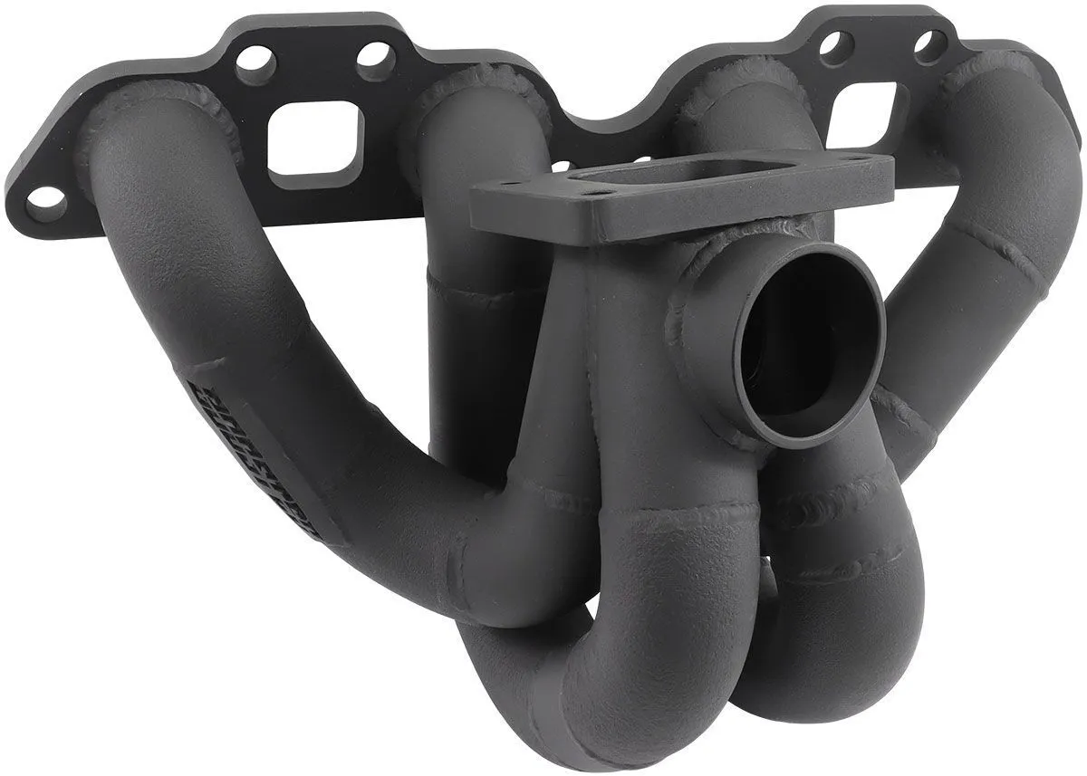 Aeroflow Performance steampipe turbo manifolds are a series of pipes that collect exiting exhaust gases which can be channelled into our merge collector which are perfectly matched to our Boosted range of turbochargers. Our merge collector design allows all pipes to enter at the exact same angle, and merge together at a point in the middle, pointing straight into the turbine. No pipes enter across each other, so airflow is not disrupted, meaning a perfect balance between boost control and flow. With minimal back pressure where the manifold meets the turbo, you can be sure that you're getting the best flow possible from our turbo manifold.