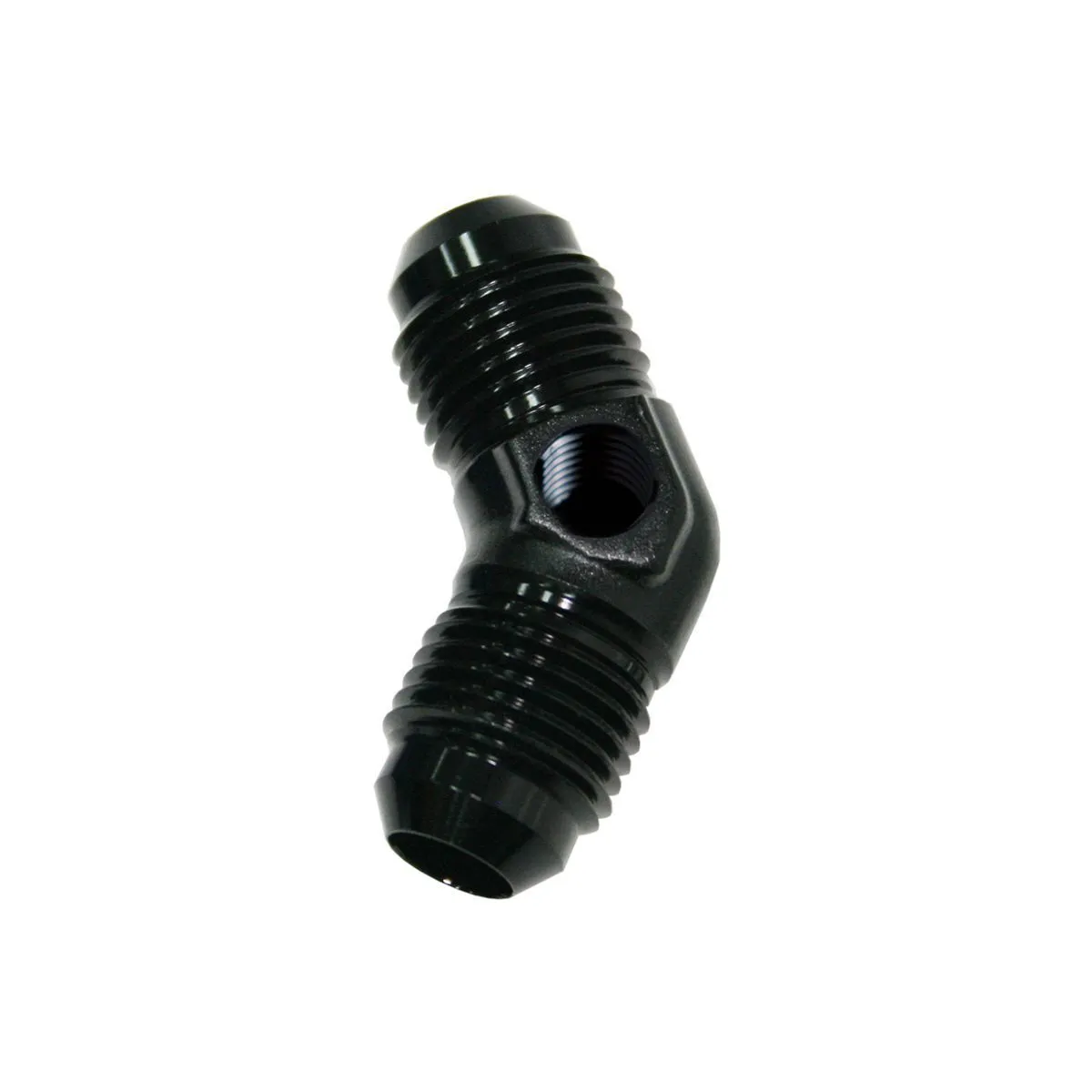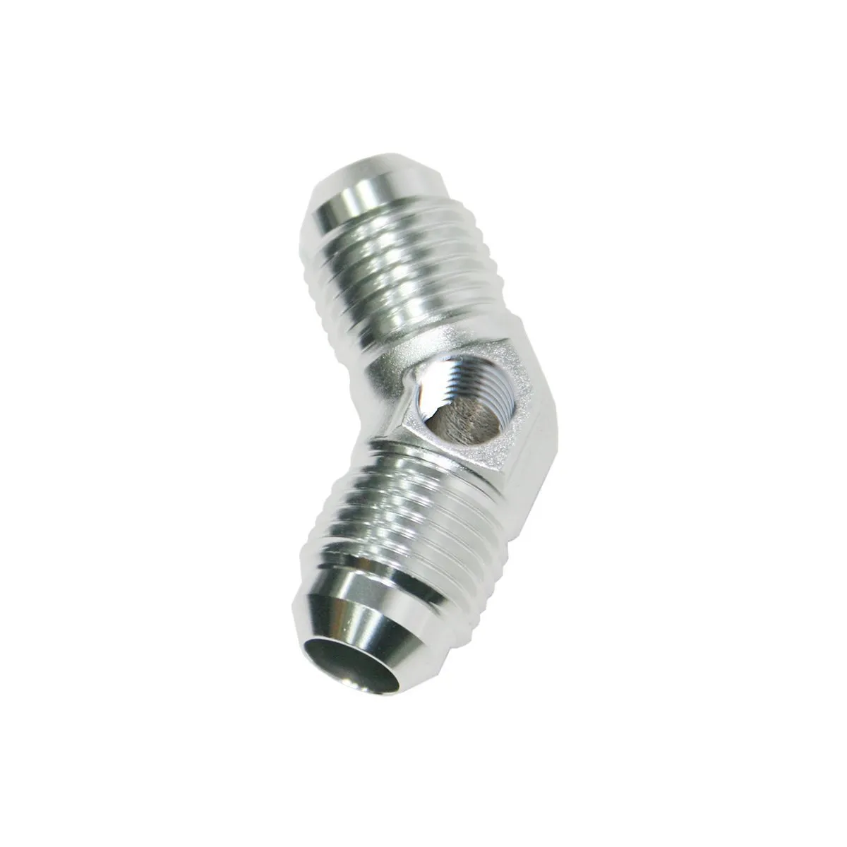 Male to Male forged AN union. Allows you to connect two female hose ends with a 45 degree bend.