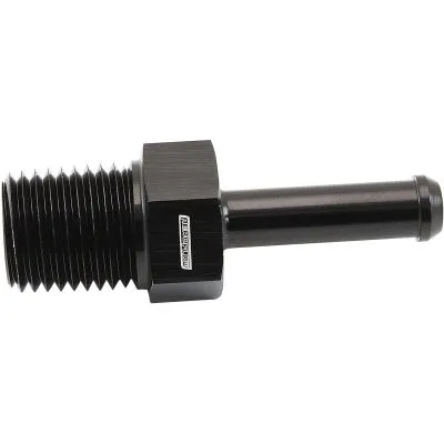 These handy NPT to straight hose barb fittings are designed to allow easy fuel line installation on electric fuel pumps and regulators when using rubber fuel line. They have a male NPT fitting on one end and a barbed fitting on the other end and they're available in different sizes to fit your needs.These barb sizes are designed to work with Aeroflow400 series and 500 series PushLock Rubber hose. Available invarious sizes with Blue, Blackand Silver finishes.